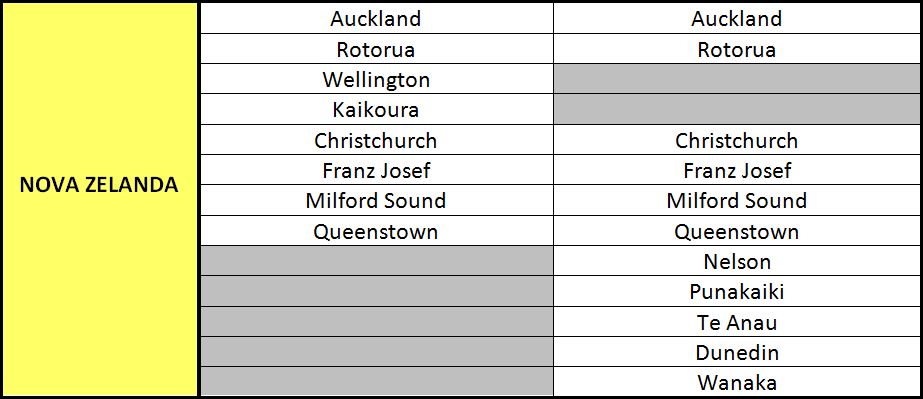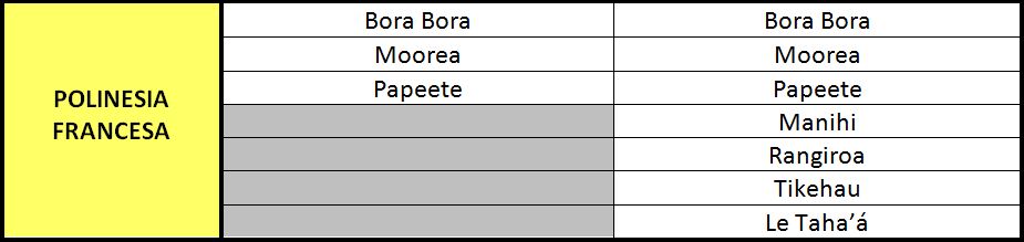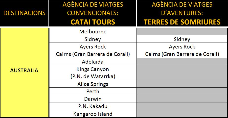 COMPARACIÓ DE LES DESTINACIONS OFERTADES A OCEANIA.